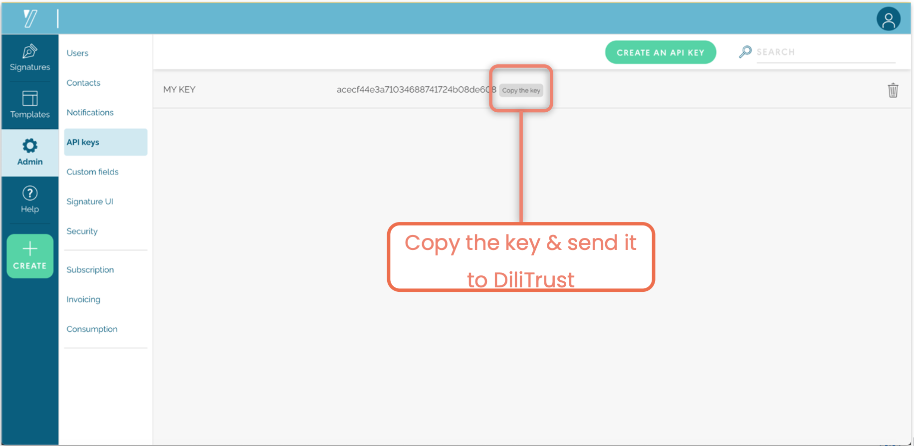 - Copy the Key and share it with DiliTrust Customer Care Team