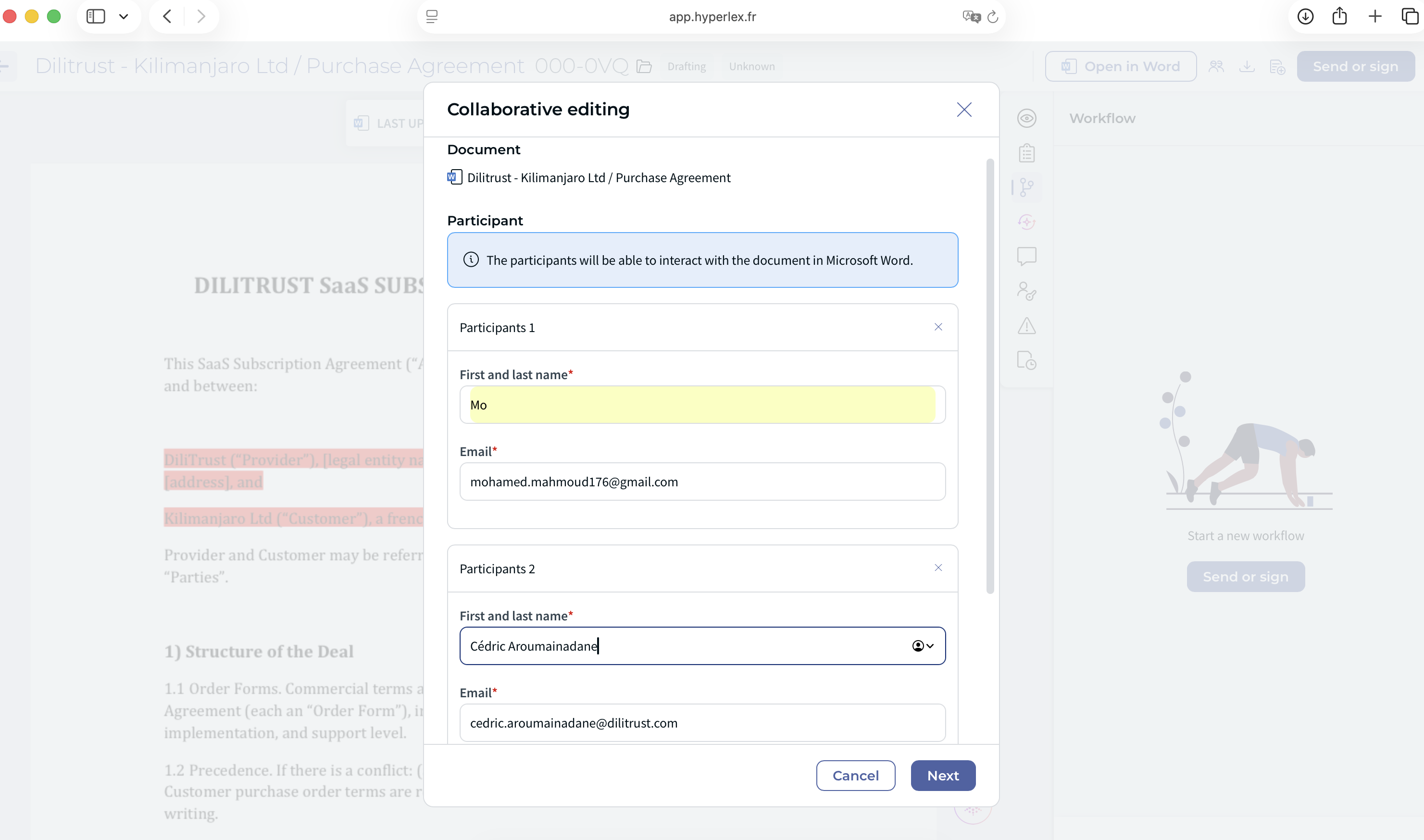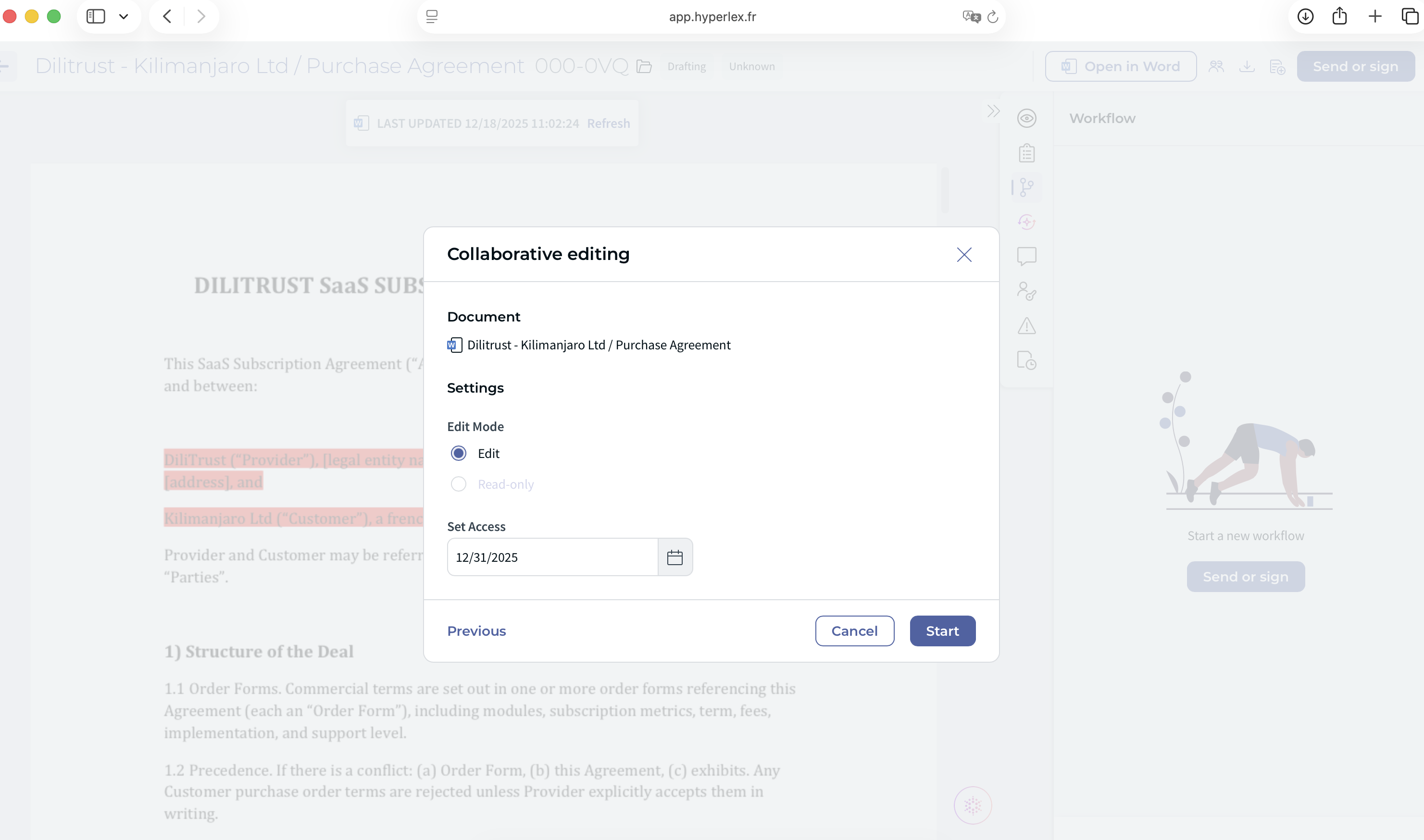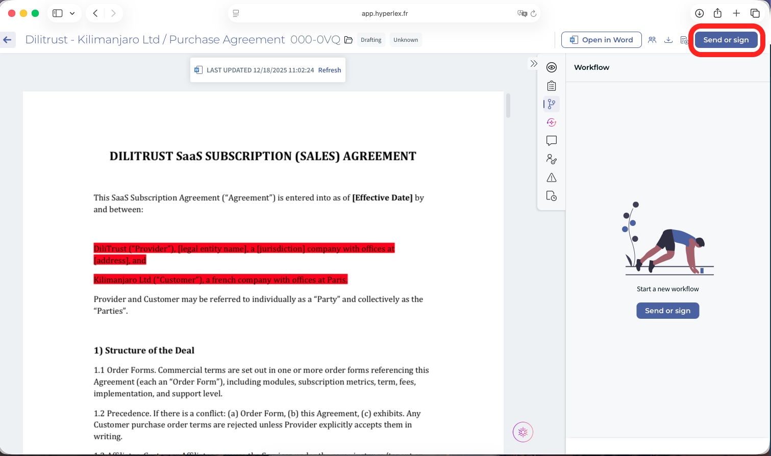 Use Collaborative Editing whenever you need several people to review or update a document at the same time — for example, during contract negotiations, NDA reviews, or multi-stakeholder approval processes.