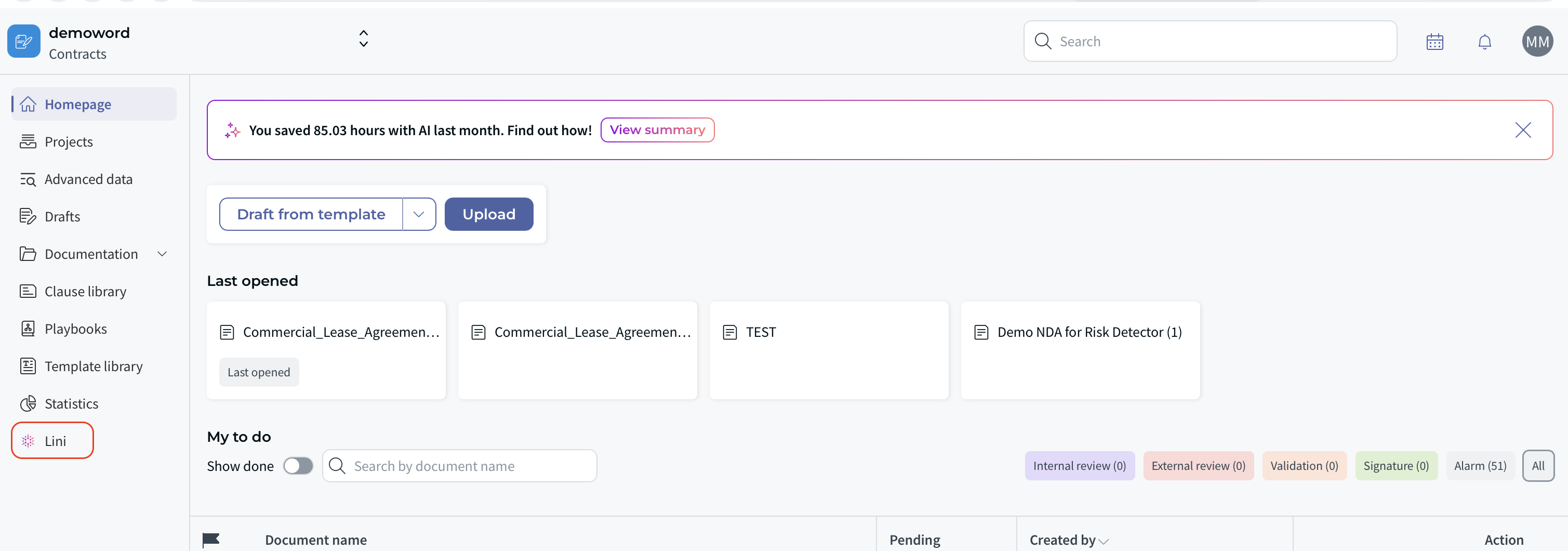 Lini is your intelligent legal assistant built directly into CLM.